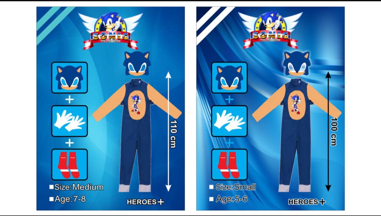لباس سونیک در دو اندازه ۱۰۰ و ۱۱۰ سانتی متر