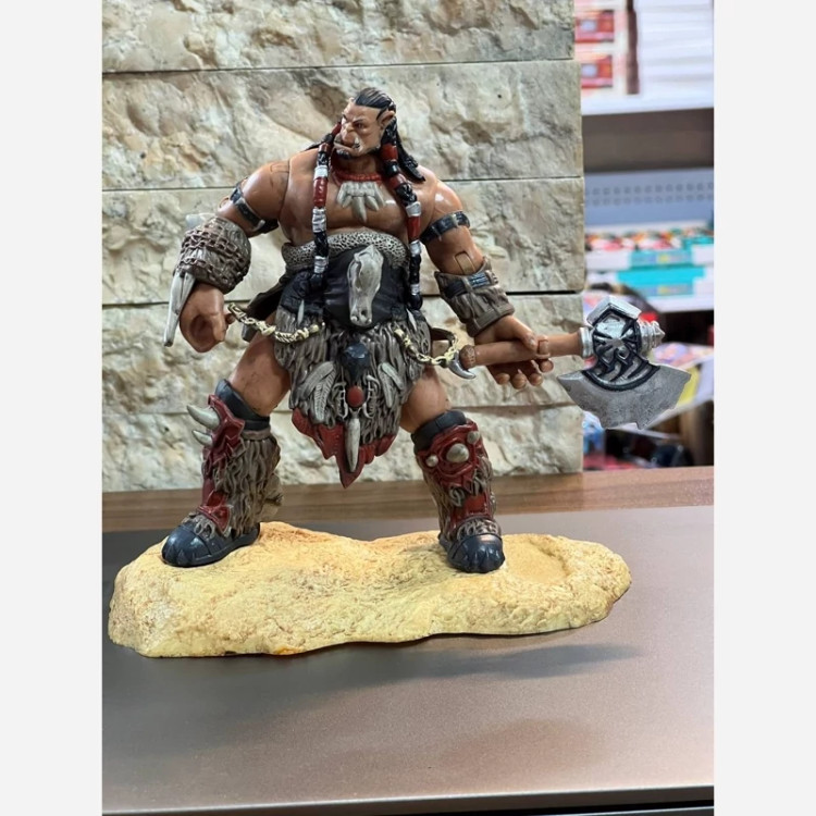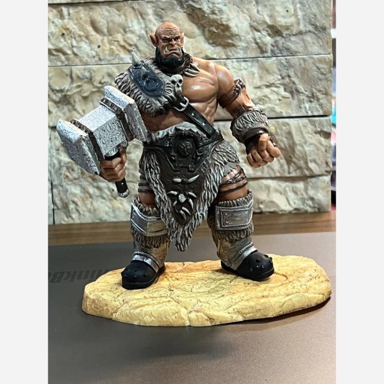 ست **فیگور وارکرافت دو عددی (Warcraft Duo Set)** در تصاویر، مدلهایی بزرگ و کلکسیونی از جنگجویان جهان *Warcraft* هستند که با جزئیات بسیار بالا و ظاهر قدرتمند طراحی شدهاند. مشخصات محصول: - **شخصیتها:** دو جنگجو از نژاد "اورک" (Orc Warriors) از دنیای *Warcraft* - **ارتفاع هر فیگور:** حدود **25 تا 30 سانتیمتر** - **جنس:** PVC فشرده و رزین با رنگآمیزی دستی و متریال نیمهسنگین - **ویژگیهای ظاهری:** 1. **مدل اول:** اورک با پتک سنگی بزرگ، زره چرمی و خزدار، ایستاده روی پایه سنگی زرد ـ طراحی جنگی کلاسیک. 2. **مدل دوم:** اورک با تبر دو تیغه و تزئینات استخوانی و جزییات زیاد در لباس و زیورآلات. - **پایه:** هر فیگور دارای پایه شبیه سنگ طبیعی برای ایستادگی و نمای دکوری زیبا این دو فیگور با ظاهری اقتدارآمیز و رنگآمیزی واقعگرایانه، انتخاب فوقالعادهای برای کلکسیونرهای دنیای Warcraft و دوستداران سبک فانتزی جنگی هستند.