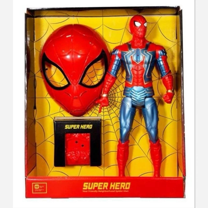 فیگور **اسپایدرمن تک جعبه موزیکال همراه با ماسک و پایه (Spider‑Man Musical Boxed Set)** در تصویر، یکی از نسخههای جذاب و سرگرمکننده از سری اسباببازیهای ابرقهرمانی است که طراحی آن براساس لباس **Iron Spider** از دنیای مارول انجام شده است. مشخصات کامل محصول: - **شخصیت:** Spider‑Man (نسخه Iron Armor از MCU) - **محتویات جعبه:** 1. فیگور بزرگ اسپایدرمن با لباس قرمز و آبی دارای خطوط فلزی 2. ماسک اسپایدرمن به اندازه صورت کودک یا دکور دیواری 3. پایه و واحد موزیکال با دکمه فعالسازی صدا - **ویژگیها:** - **قابلیت پخش موزیک و نور** از طریق دکمه روی پایه - مفاصل متحرک در دستها و پاها برای حالتدهی - طراحی جعبه زرد با پسزمینه تار عنکبوت، مناسب برای هدیه یا کلکسیون - **جنس:** پلاستیک فشرده (ABS + PVC) مقاوم - **ارتفاع فیگور:** حدود **30 تا 35 سانتیمتر** - **کیفیت ساخت:** رنگ براق با چاپ دقیق روی لباس این ست اسپایدرمن موزیکال تکجعبهای با ماسک و پایه، انتخاب محبوب بین کودکان و کلکسیونرهای کمسنتر است — ترکیبی از جلوه، صدا و ظاهر جذاب برای نمایش یا هدیه
