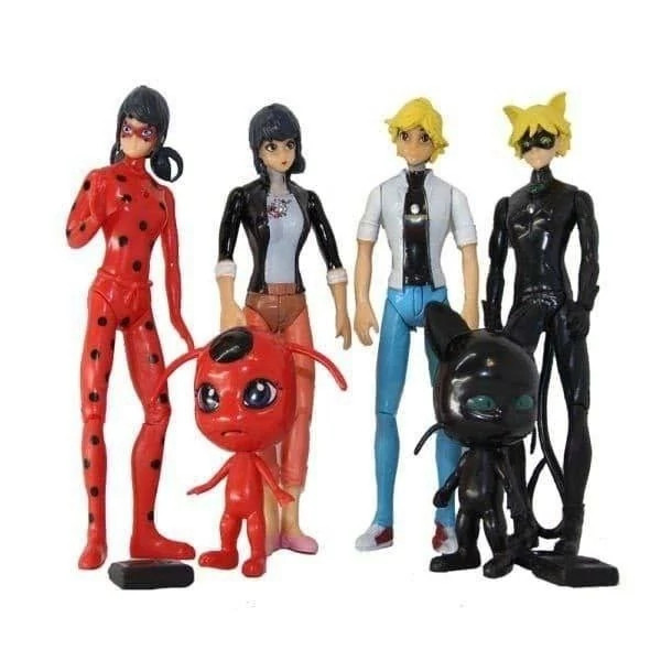 ست **6 عددی فیگور مفصلی دختر کفشدوزکی (Ladybug)** شامل شخصیتهای محبوب انیمیشن یعنی **دختر کفشدوزکی، پسر گربه ای، مارینت، آدرین، تیکی و پلاگ**. ساختهشده از **پلاستیک مقاوم و باکیفیت** با مفصلهای قابلحرکت، مناسب برای بازی،ارتفاع فیگورها حدود ** 15 سانتیمتر** بوده و طراحی رنگی و جذاب آن دقیقاً برگرفته از انیمیشن اصلی است.