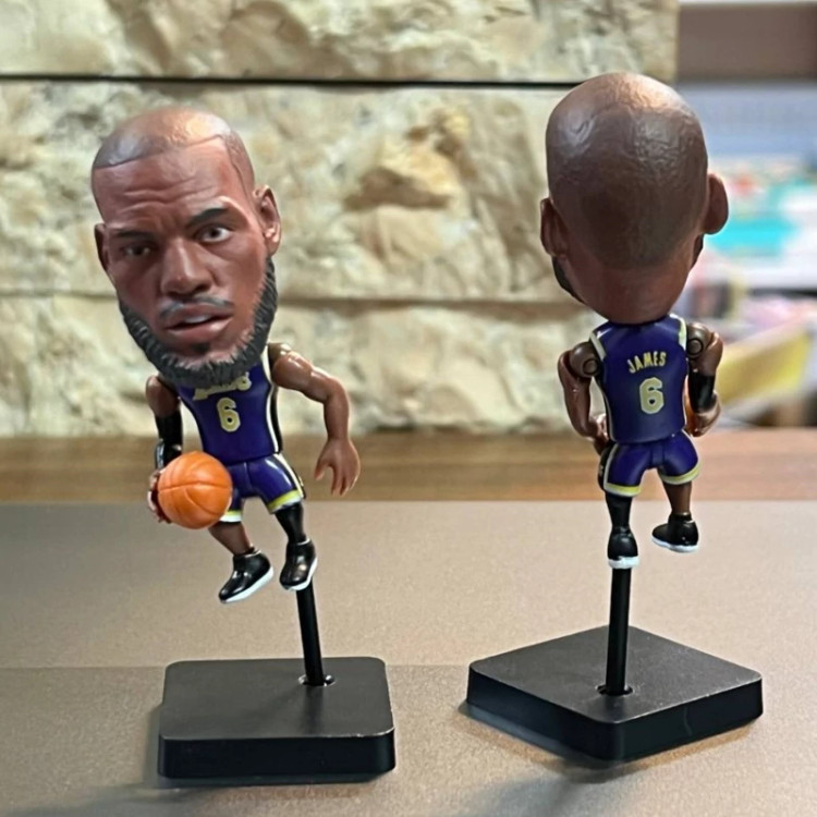 فیگور لبرون جیمز - Los Angeles Lakers (شماره 6) یکی از نمادهای تاریخ NBA در قالب یک فیگور کلکسیونی خاص! این مدل جذاب از لبرون جیمز با یونیفرم بنفش کلاسیک تیم لیکرز طراحی شده و با دقت بالا جزئیات پیراهن، توپ بسکتبال و حالت پرش پویا را بازنمایی میکند. پایهی مشکی محکم و میلهی نگهدارنده شفاف، امکان نمایش زیبای فیگور را فراهم کرده و جلوهای مدرن به ویترین شما میبخشد. مشخصات: جنس: PVC درجهیک ارتفاع تقریبی: 6 سانتیمتر رنگ و جزئیات چاپی با کیفیت بالا طراحی پویا در حالت حمل توپ مناسب برای کلکسیونداران و طرفداران NBA با این فیگور، بخشی از شور و افتخار لیگ بسکتبال را به مجموعهی خود اضافه کنید! 🏀✨
