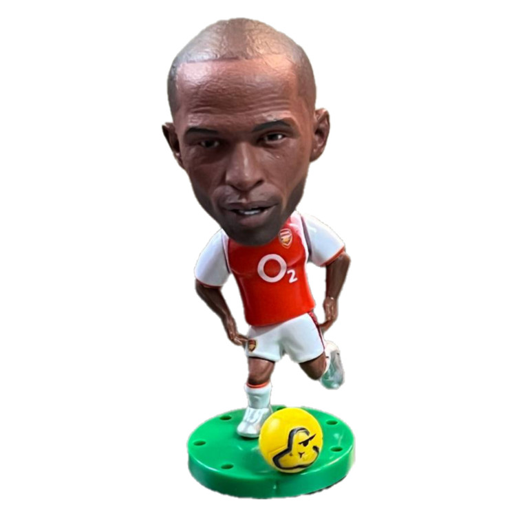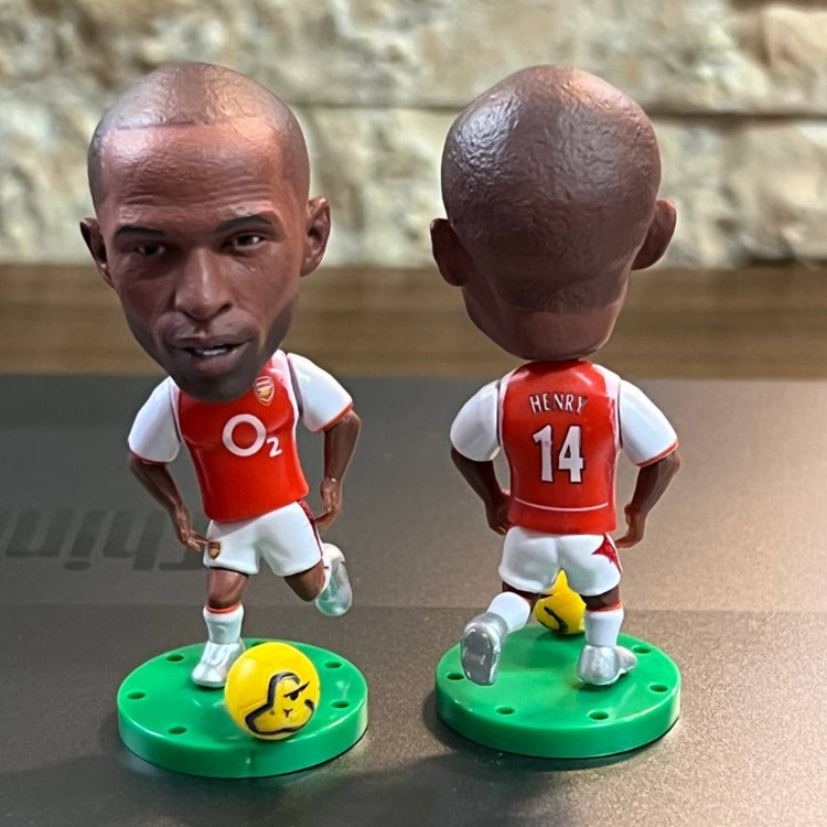 فیگور فوتبالی Thierry Henry از برند Soccerwe با ارتفاع حدود ۶ سانتیمتر؛ بازآفرینی او در کیت کلاسیک Arsenal با اسپانسر مشهور O2 و شمارهٔ ۱۴.