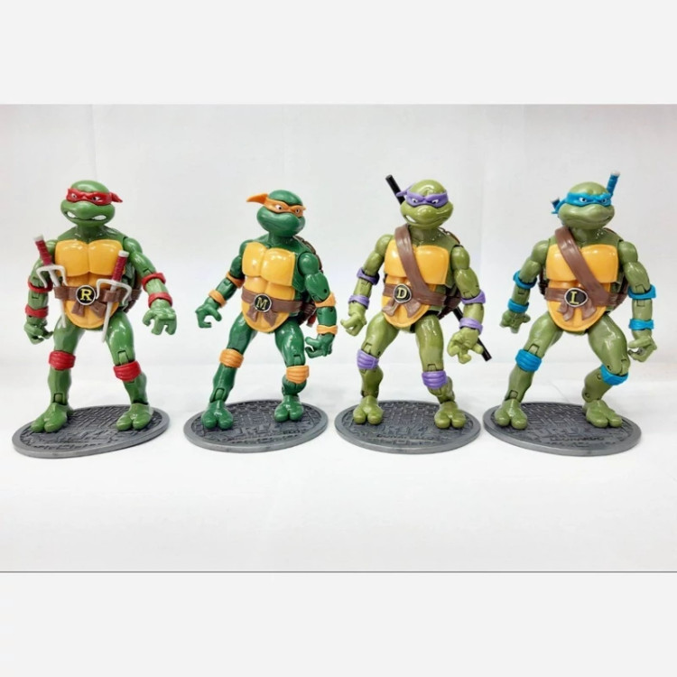 ست فیگور **لاکپشتهای نینجا 4 عددی تمام مفصلی** شامل شخصیتهای معروف **رافائل، مایکلآنجلو، دوناتلو و لئوناردو** است. هر فیگور دارای **مفصلهای قابل حرکت** در دستها، پاها بوده و با سلاح مخصوص هر شخصیت طراحی شده است. ساختهشده از **پلاستیک فشرده با جزئیات رنگی دقیق و پایه ثابت برای نمایش**. مناسب برای * دکور و بازی کودکان عاشق لاکپشتهای نینجا**. ارتفاع تقریبی هر فیگور: 20 سانتیمتر.